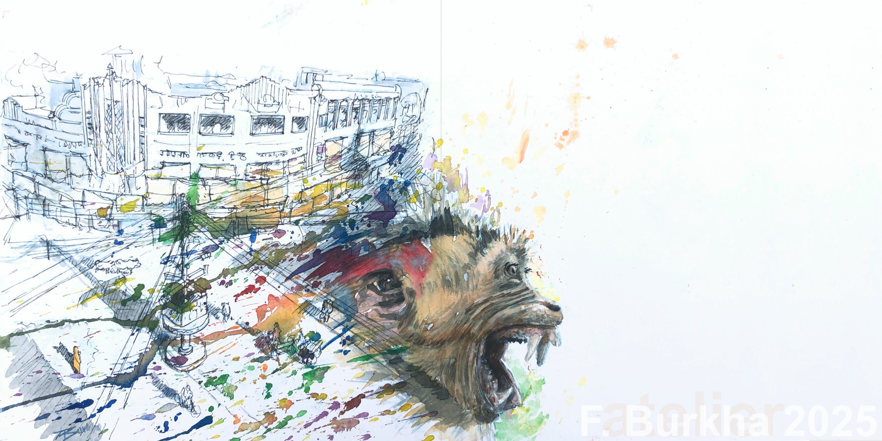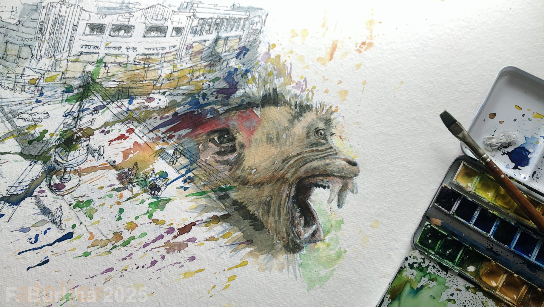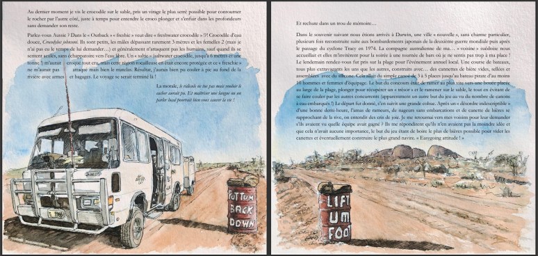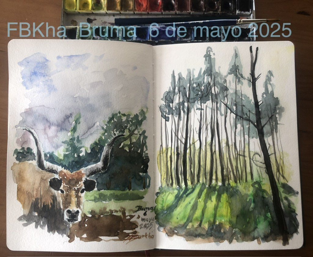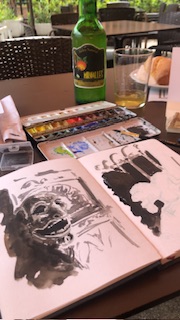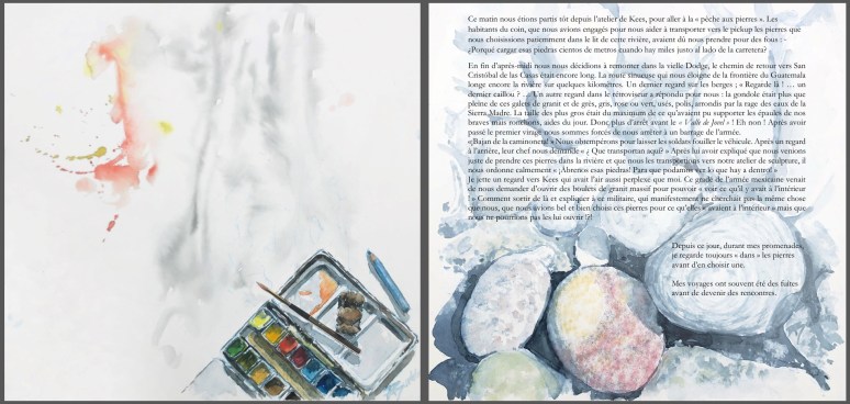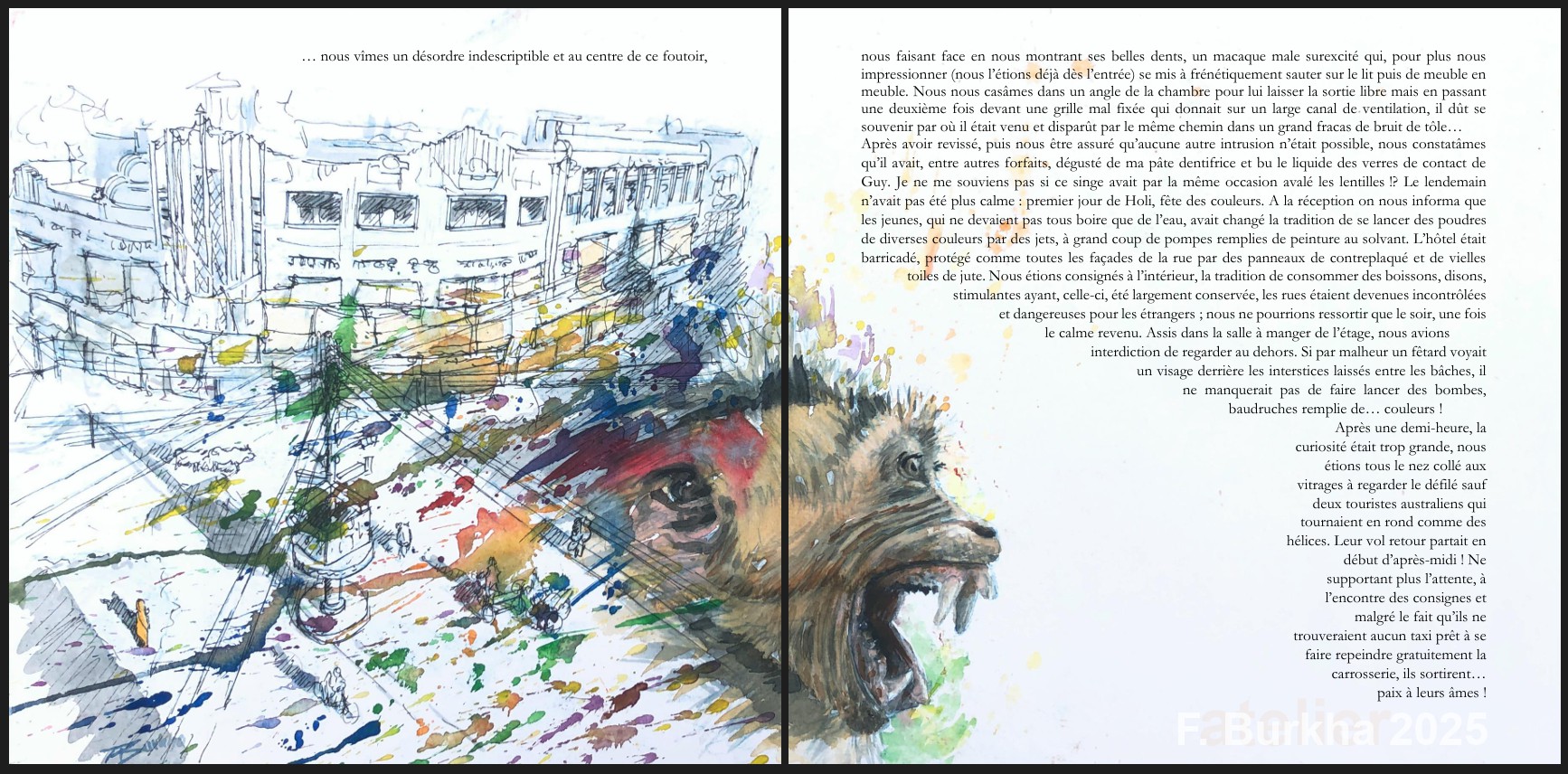 Cette aquarelle fait partie du projet de livre « Voyager en deux trous de mémoire » actuellement je prépare une version complétement illustrée de dessins et aquarelles au format 21/21 cm.