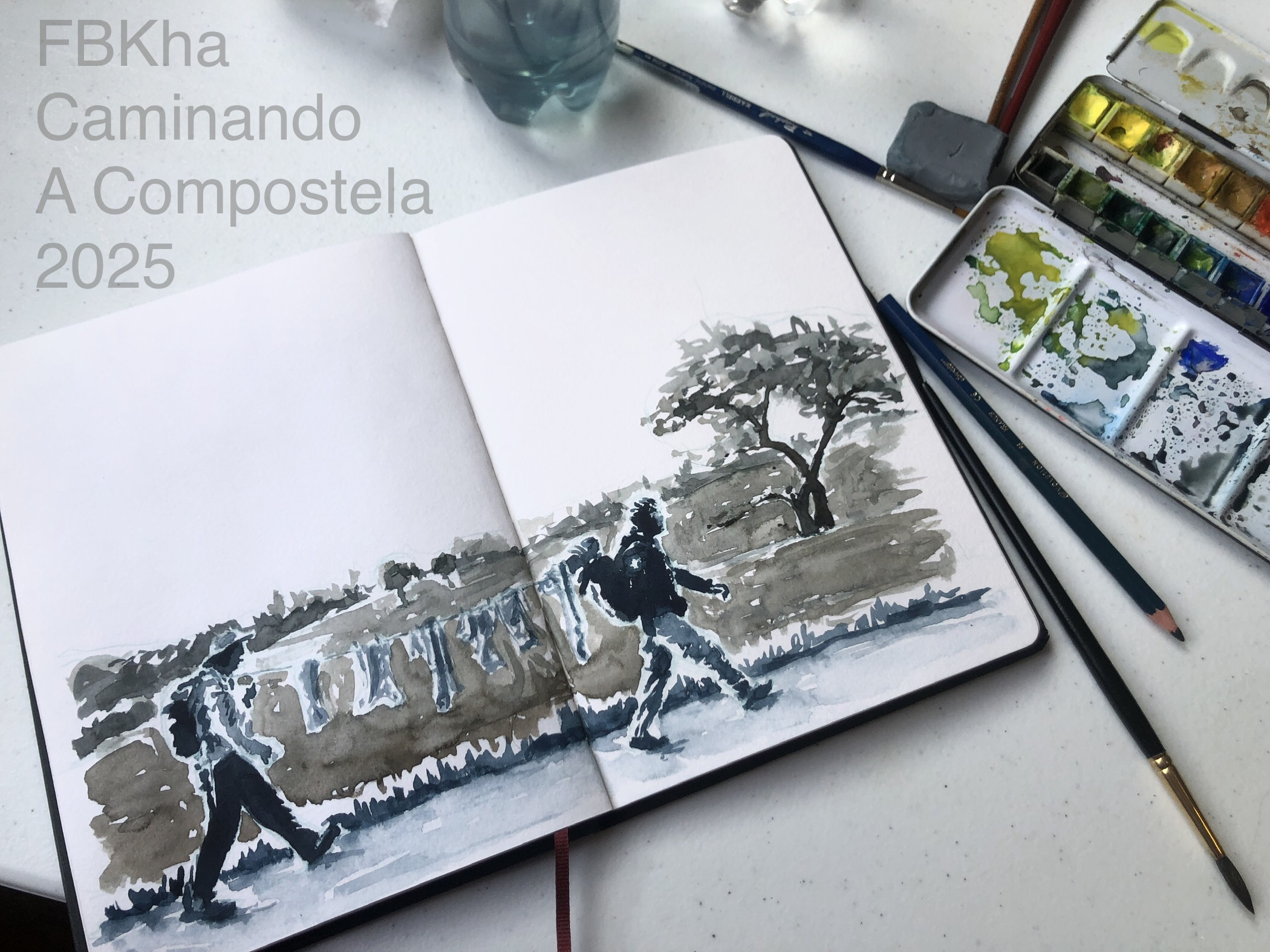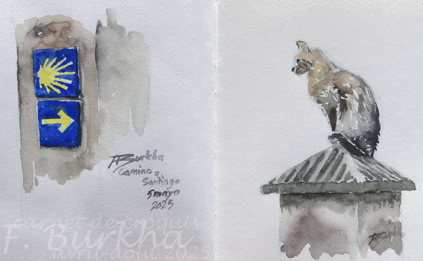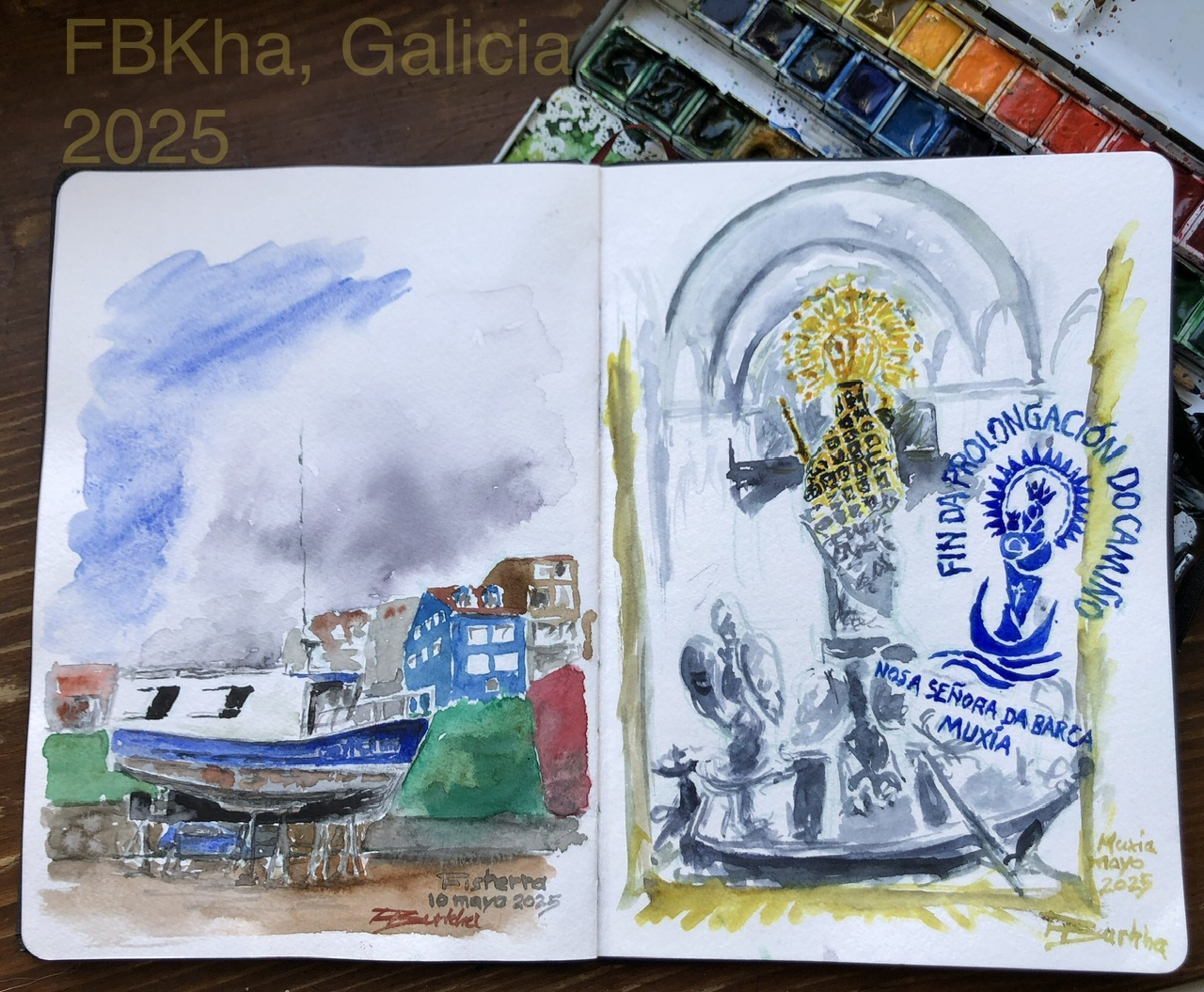 lien sur le post du début du voyage: carnet de croquis de voyage, Madrid, Tolède, La Corogne, Santiago de Compostela, Cabo Fisterra, Muxía. 24 avril / 12 de mayo2025