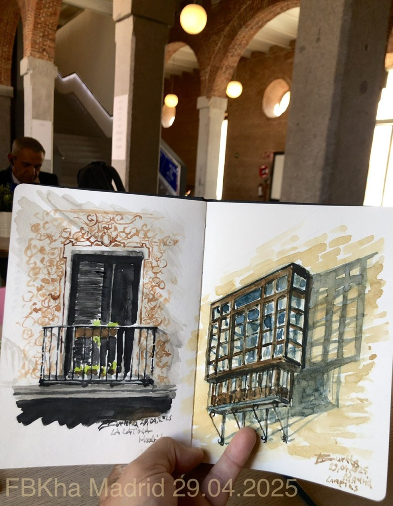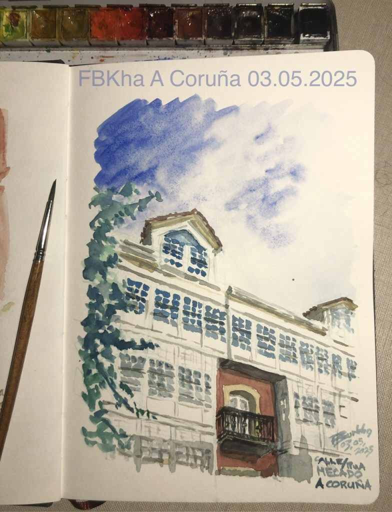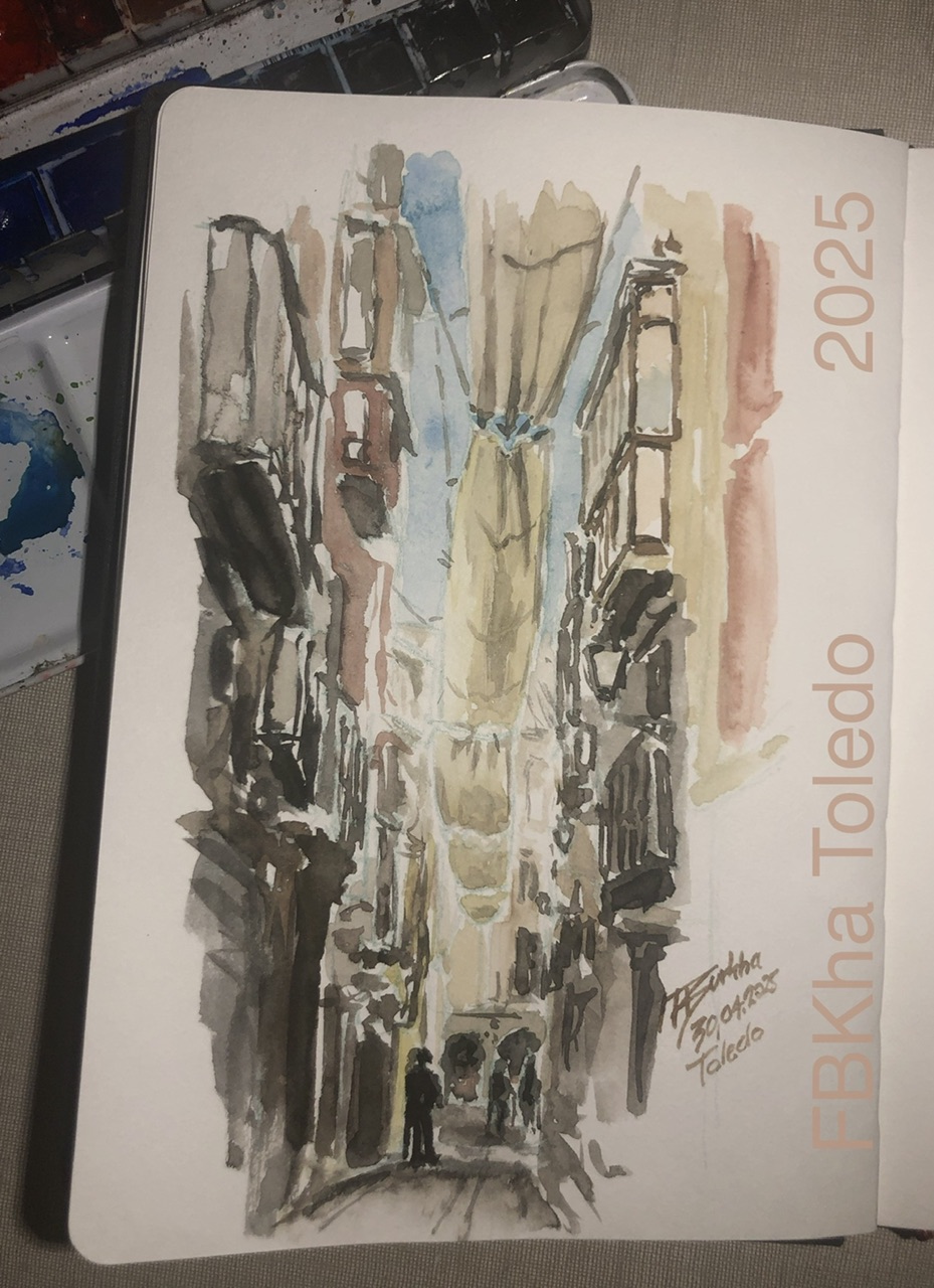 lien sur le post du début du voyage: carnet de croquis de voyage, Madrid, Tolède, La Corogne, Santiago de Compostela, Cabo Fisterra, Muxía. 24 avril / 12 de mayo2025