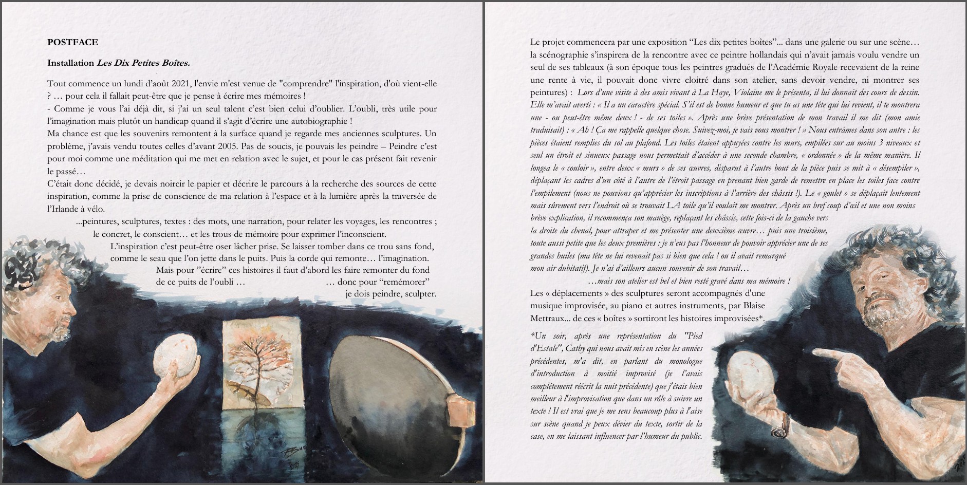 Aujourd’hui je viens de terminer les illustrations du volet « livre » du projet multimédia « Voyager entre deux trous de mémoire » , 136 pages!