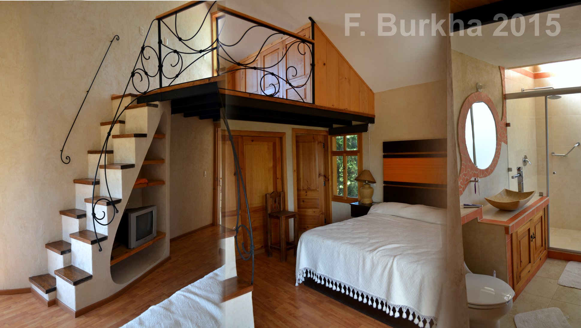 Recamara, escalera hacia tapanco y terraza sobre el baño. 2015