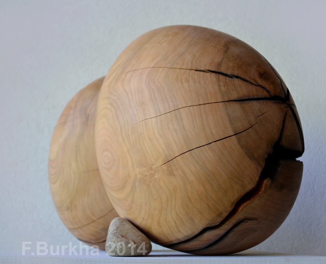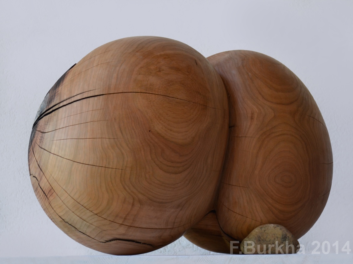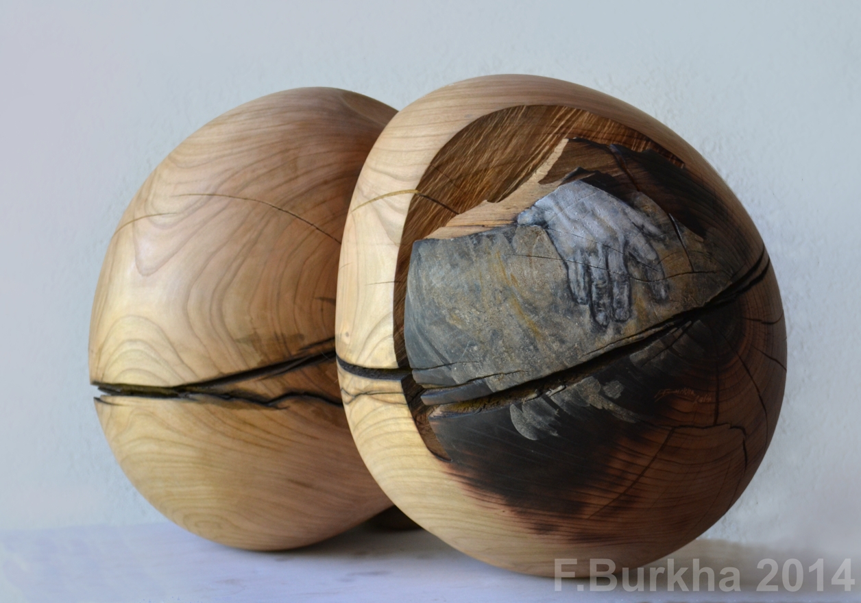 acrylique et cendre sur cerisier, pierre