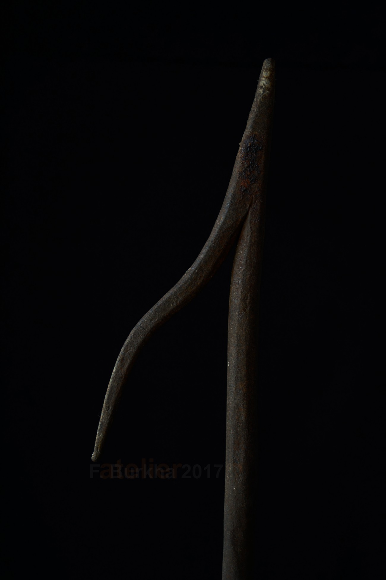 Un outil en fer forgé dont la hampe est cassée.