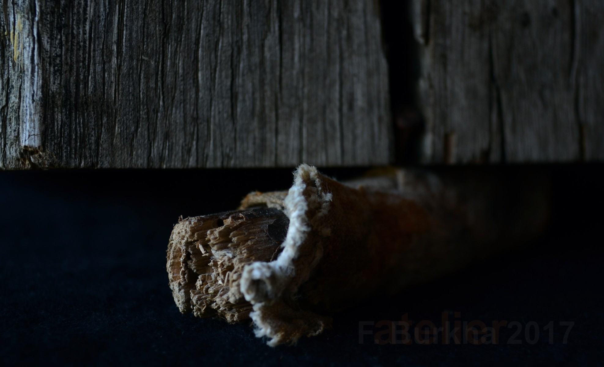 fer forgé, chêne, acrylique, terre calcinée, cendre, argile, noisetier et coton