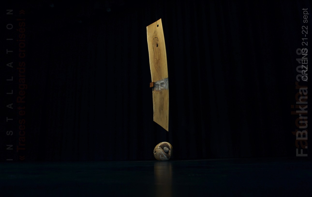 – ci-dessous premier test de mise en lumière de « acteurs » de l’installation «Traces et Regards croisés!», sur la scène d’Orzens.