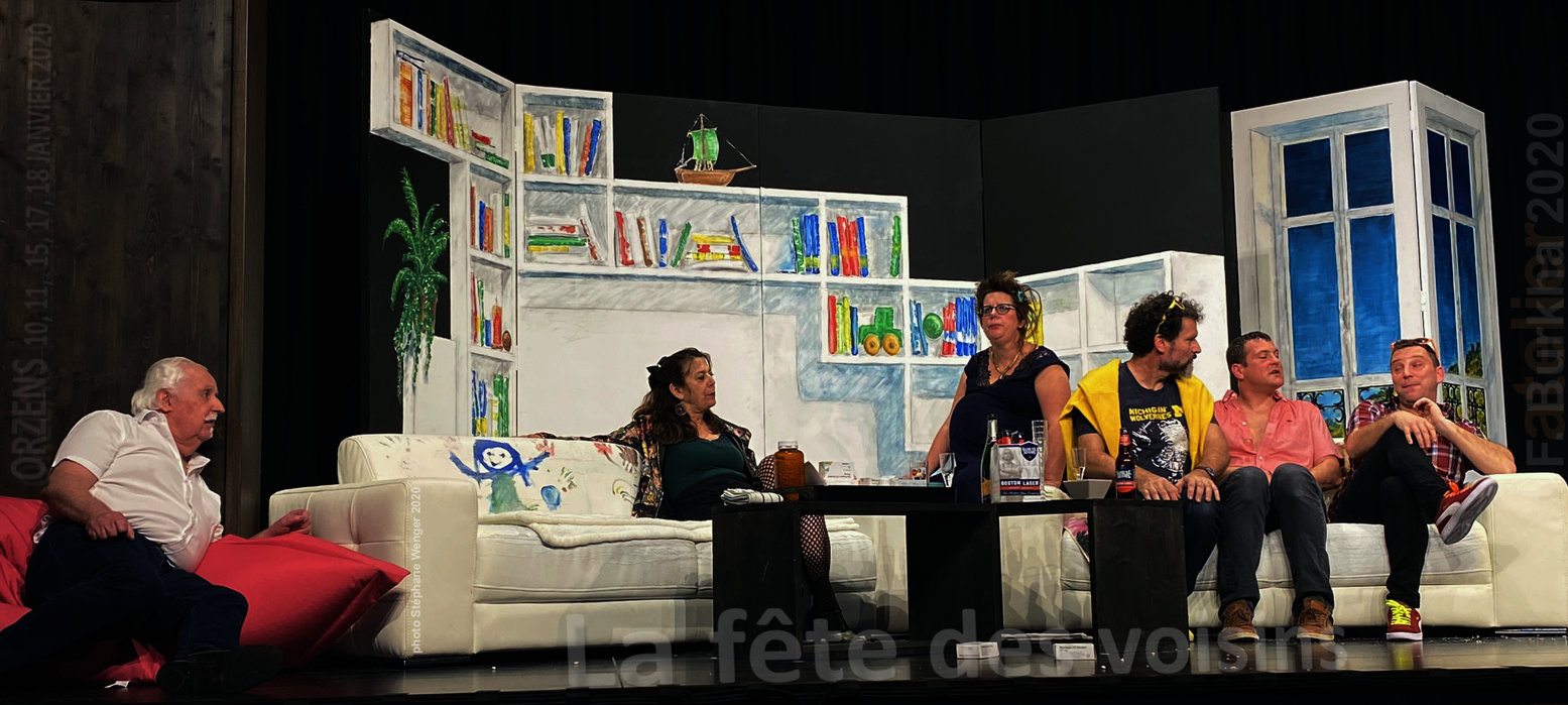 2019-20. Conception et réalisation de la scénographie du spectacle de la troupe d’Argile. « LA FÊTE DES VOISINS », comédie de Yves Moret.
