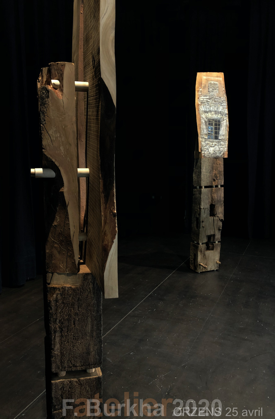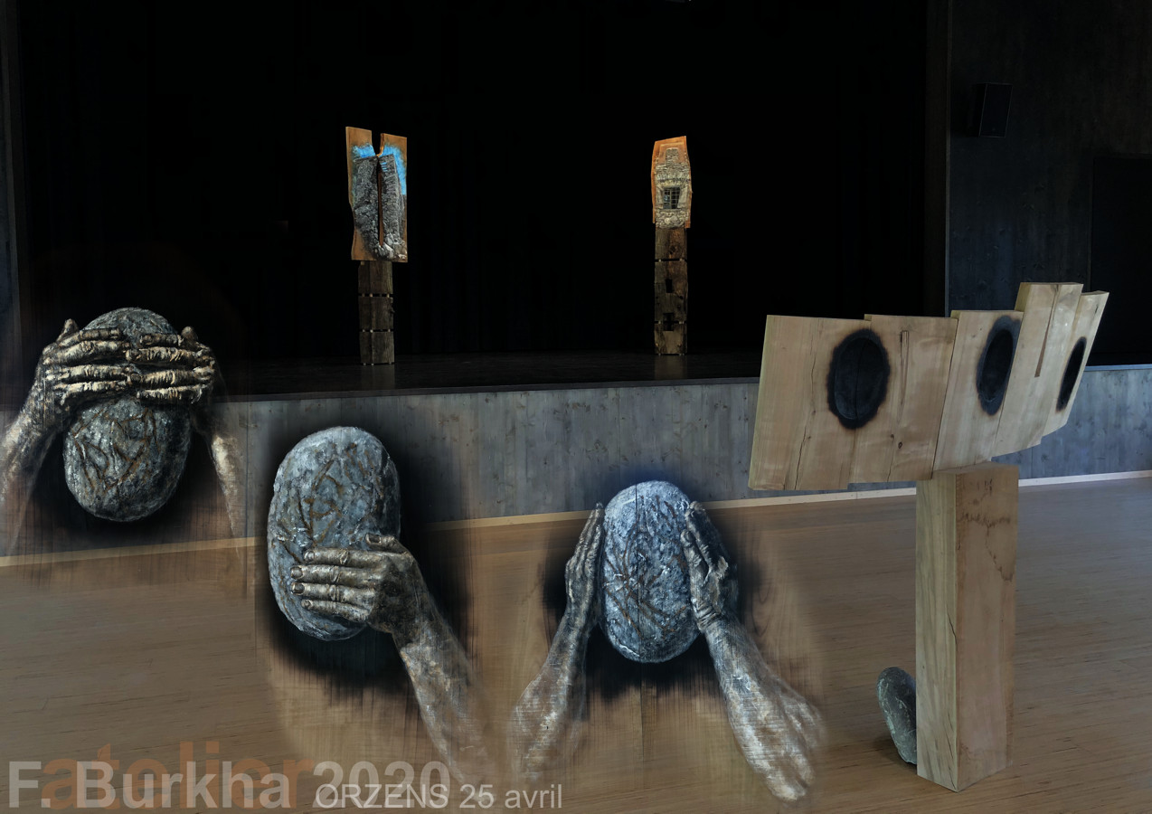 Un théâtre vide c’est triste… pour cette raison et parce que nous n’avons pas pu sortir durant ces vacances de Pâques. J’ai décidé de réaliser une installation, en m’inspirant du “moment”, avec deux acteurs et un spectateur “bout de bois”.