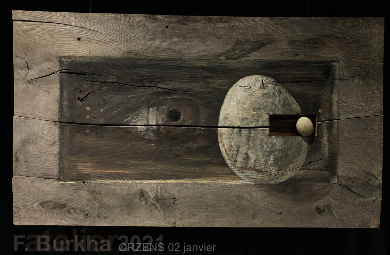 (regard) acrylique et cendres sur chêne. 52/194/3cm.