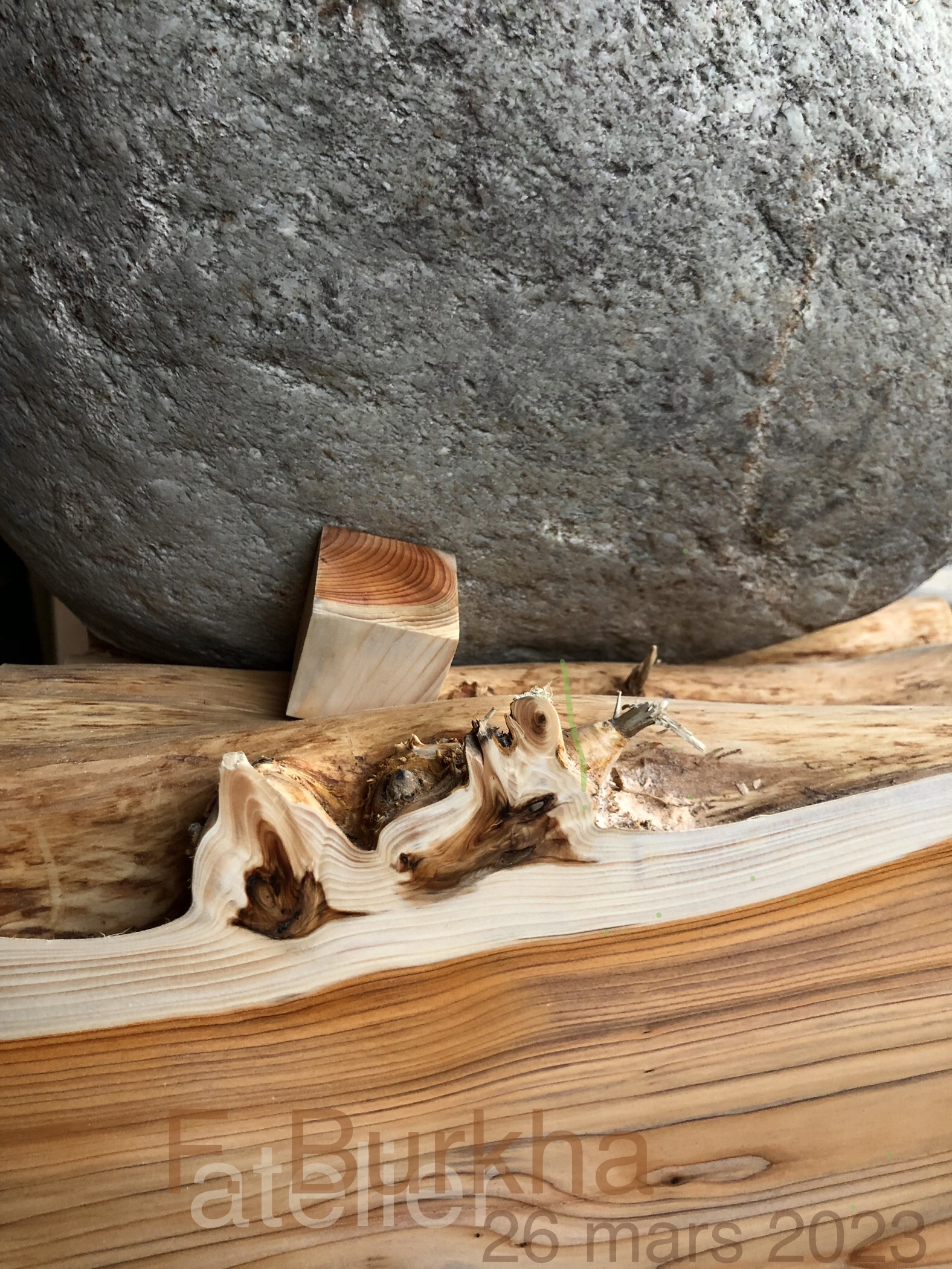 Nous avons dû malheureusement couper quelques ifs: ils auront une “deuxième vie” dans mon atelier… l’if est un bois à grain très fin ; il n’a pas besoin d’être vernis… il peut être juste poli.