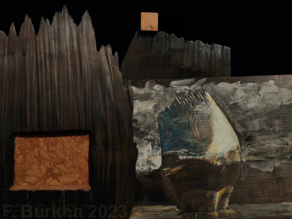 Acrylique terres et cendre sur érable calciné et bois d’if.