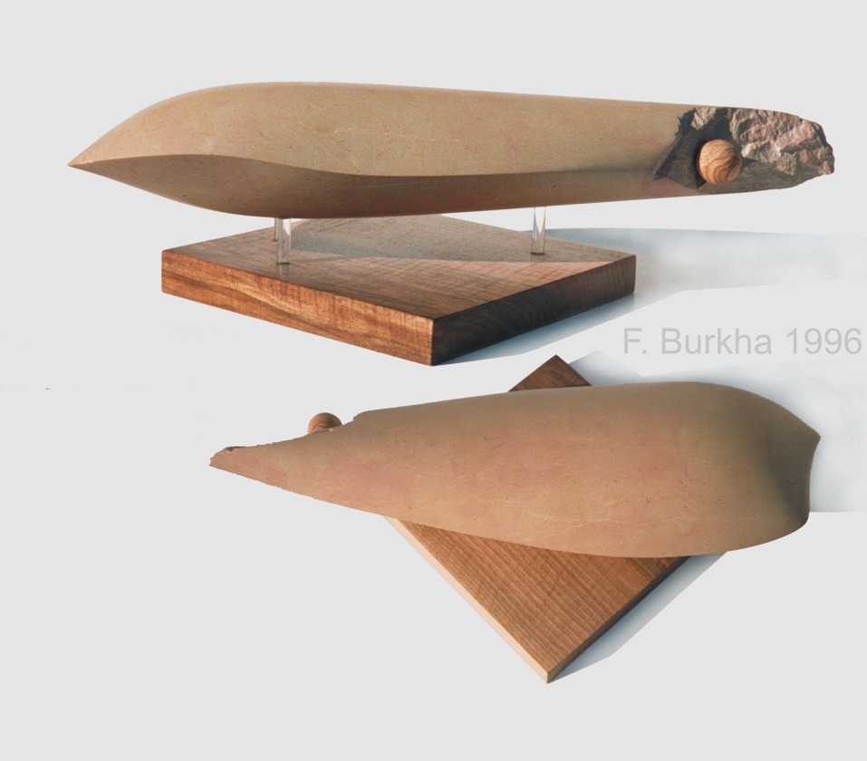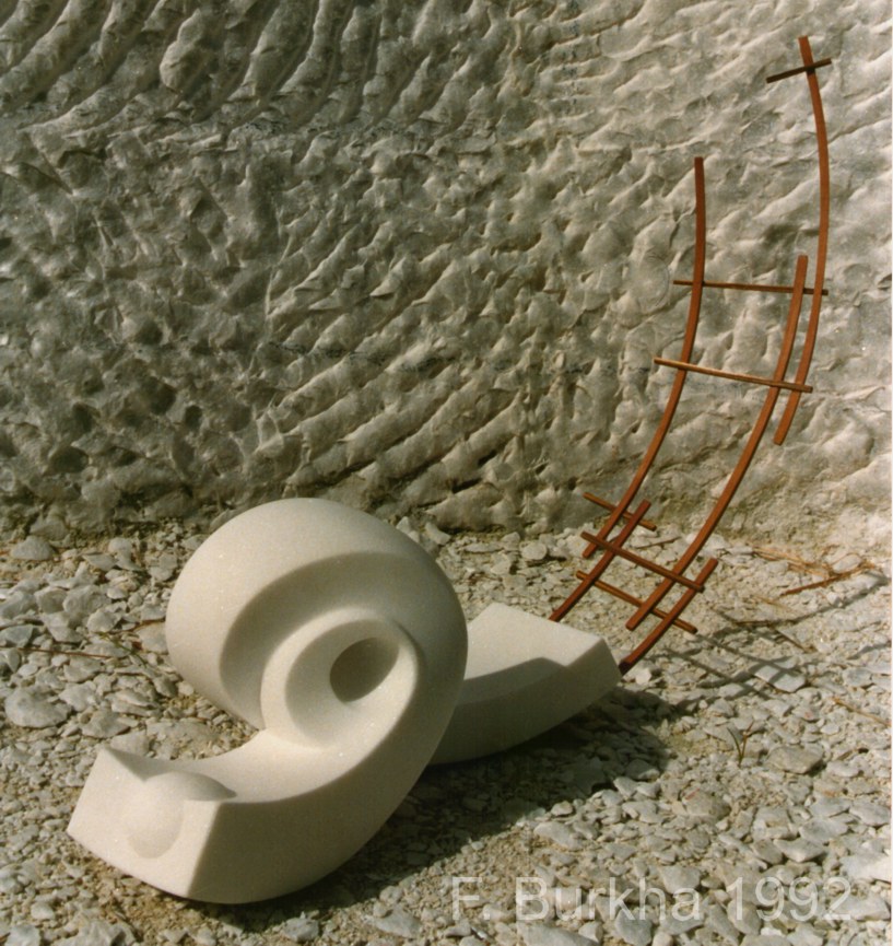 Papillon, marbre blanc entre pierre siliceuse noire, 1995
