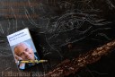Dernière couche de finition, terre et cendres, sur le trompe l’œil de la sculpture “Boîte noire”, atelier septembre 2020