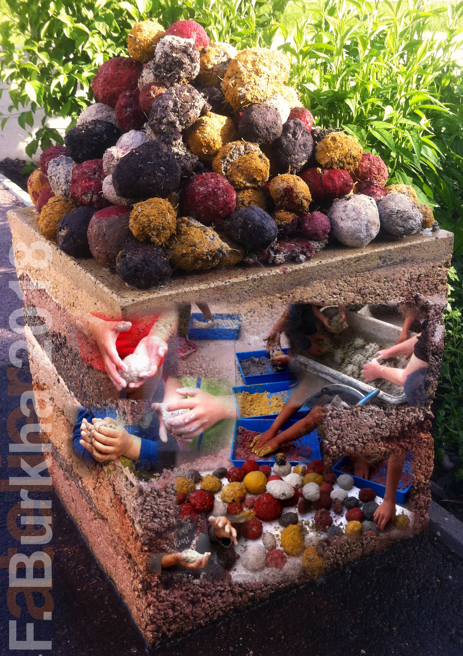29 mai, Visite d’atelier et réalisation d’une sculpture collective en béton pour deux classes, 36 élèves, du Mont-Sur-Lausanne .