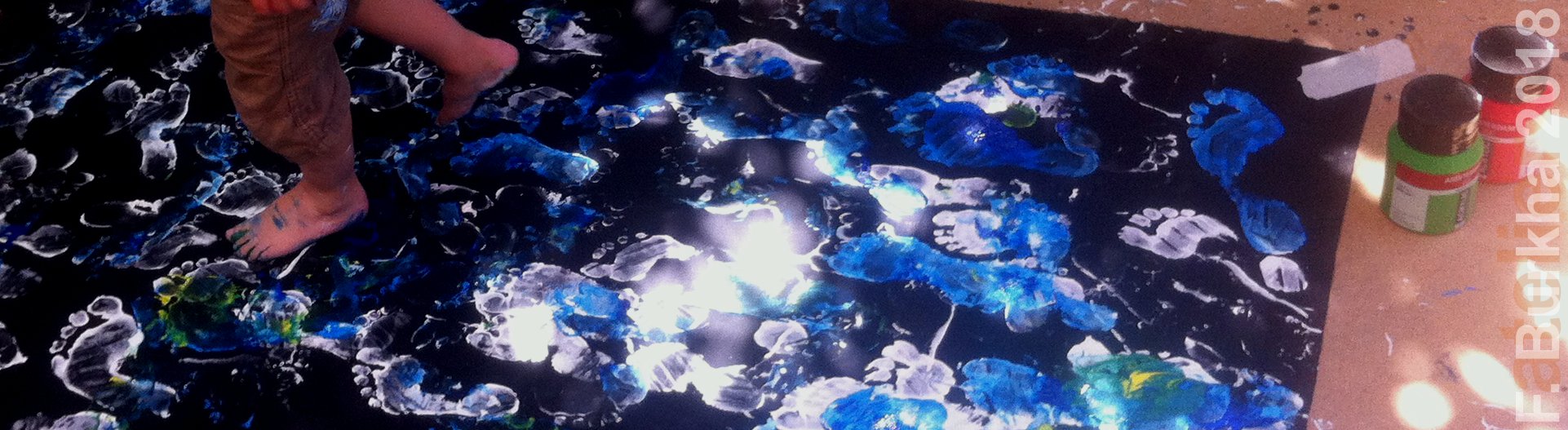 Leur sœur, 5ans, à commencer par éviter les autres marques en se concentrant sur le résultat de ses empreintes de pied.
