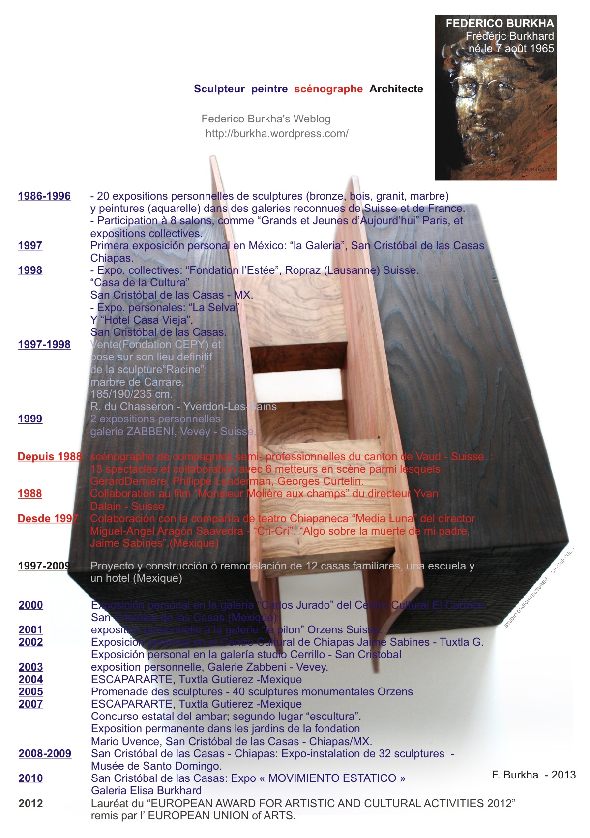 Installé au Mexique dès 1996 il reprend une activité d’architecte indépendant pour construire ou transformer des maisons familiales, hôtels, restaurants, école de langues, tout en continuant son activité de plasticien. Il reprend des études à l’Université Anáhuac México Campus Sur et obtient des diplômes en “Historia del arte” et “Iconografía”. Avec deux groupes d’artistes il fonde une galerie d’Art et coorganise les deux premières « Ferias del Arte Chiapas » à San Cristóbal de las Casas. Réalise plusieurs scénographies pour la troupe Media Luna de Tuxtla Gutierez.