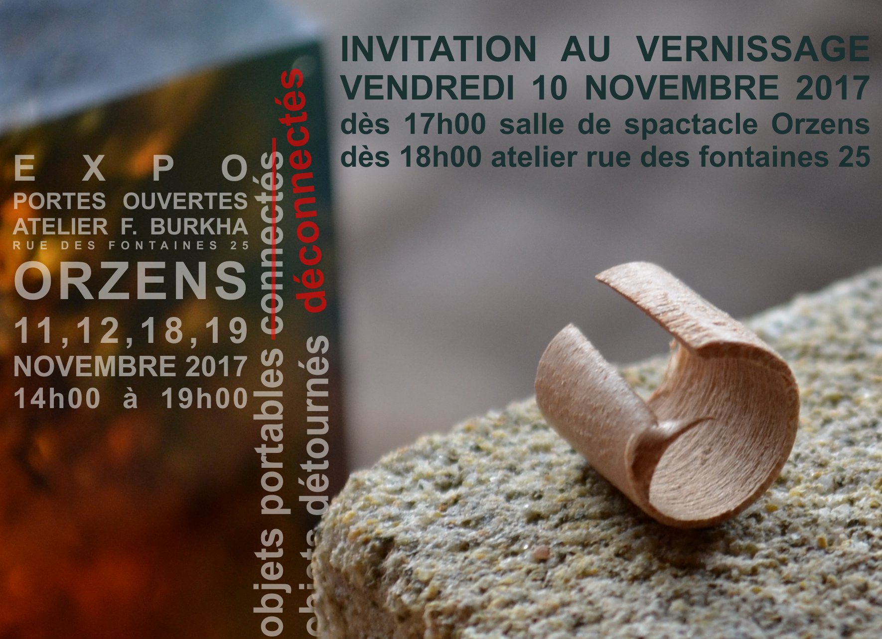 J’ai le plaisir de vous inviter au vernissage de l’exposition « objets détournés » vendredi 10 novembre 2017 à Orzens: