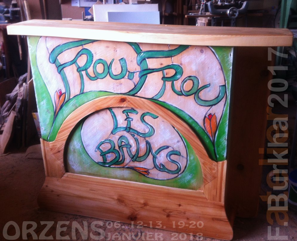Les éléments de la scénographie de « FROU-FROU LES BAINS », comédie de Patrick Haudecoeur, ont été réalisés en mélèze et sapin et sont inspirés de l’architecture d’un édifice thermal construit en 1903: