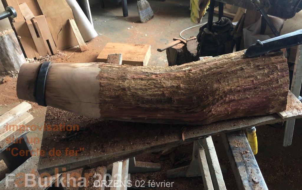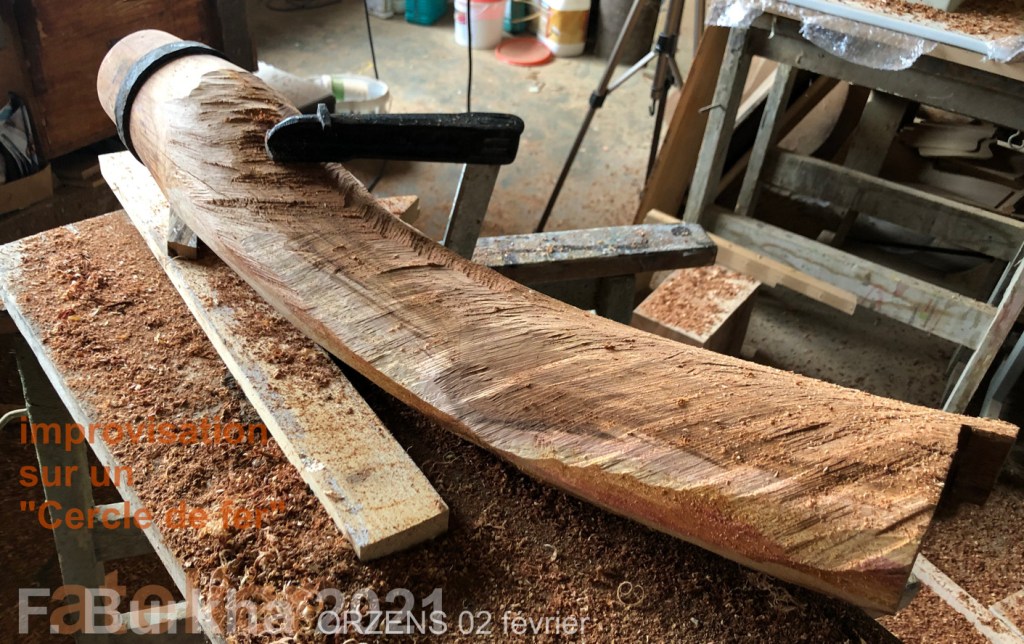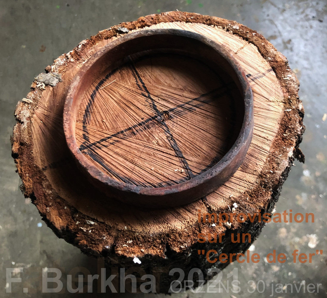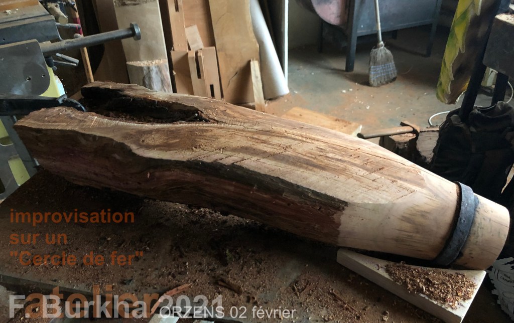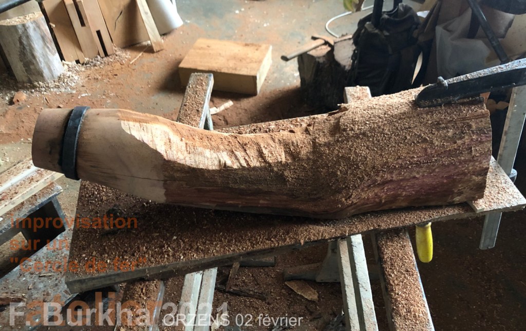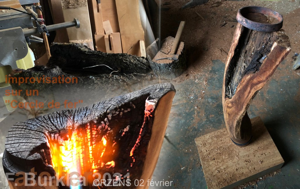 Pour chauffer l’atelier j’ai mis une vielle roue de char en bois dans le fourneau… j’en est sorti un…