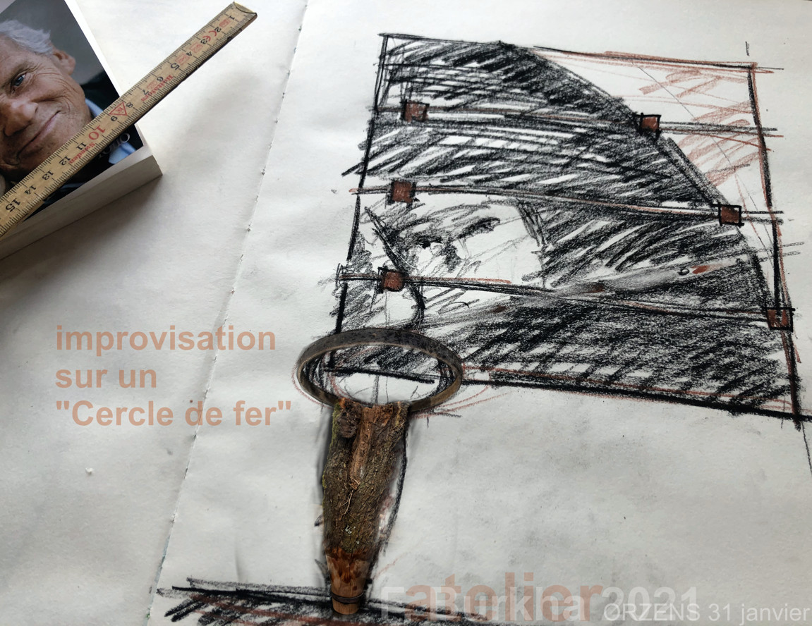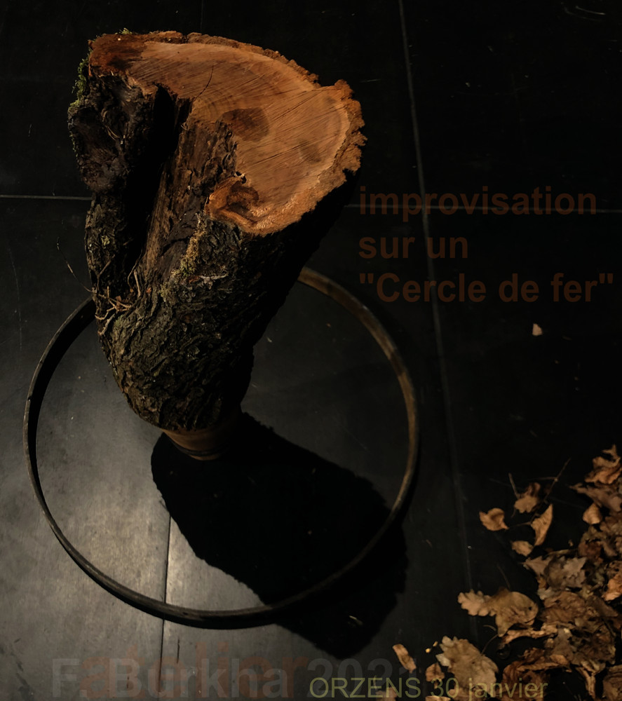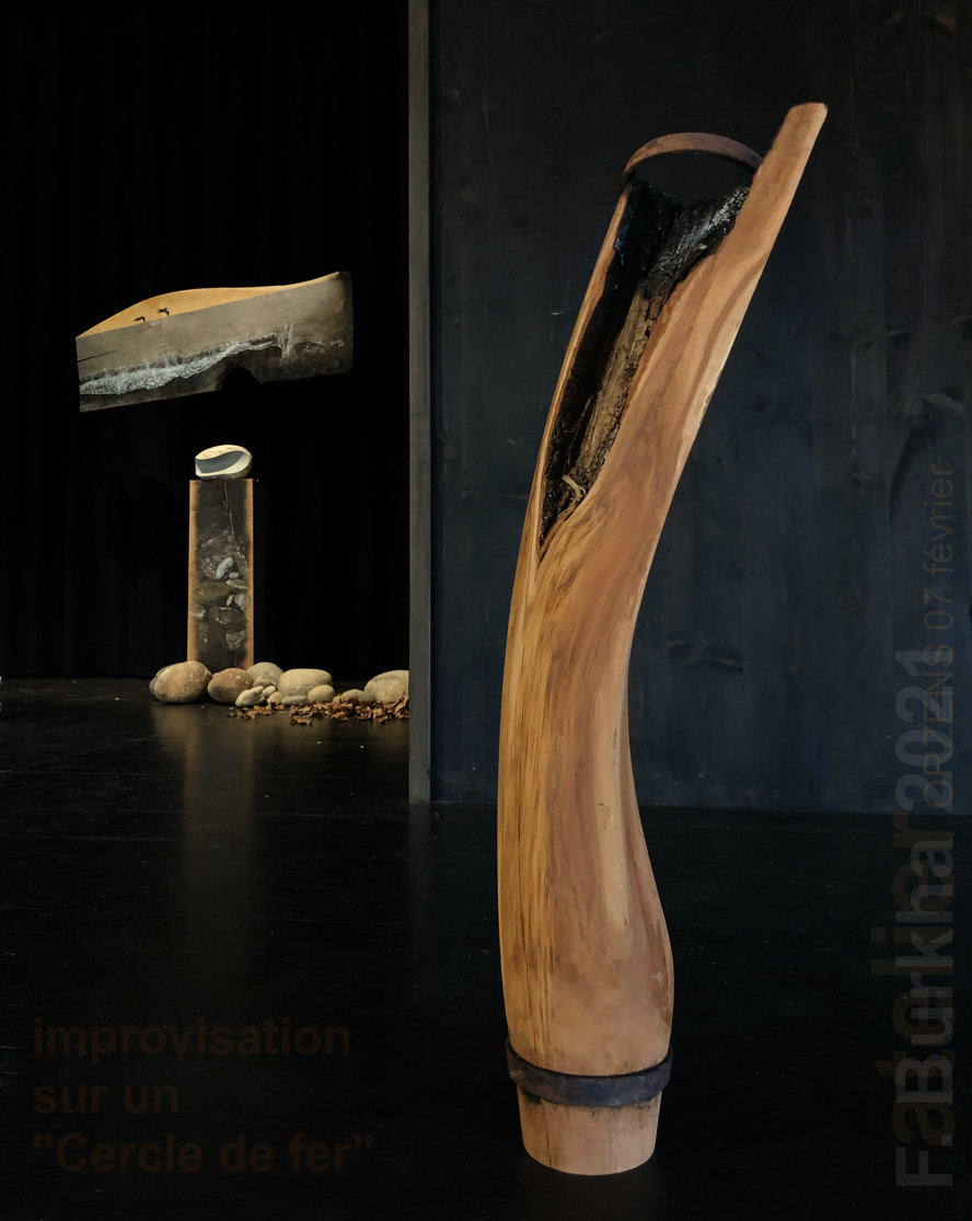 … 31 décembre, retour sur scène: Je ne supportais pas l’idée que la scène d’Orzens soit vide un mois de janvier; alors j’ai monté une petite « piéce »/installation, « Boîte noire », avec des acteurs « Covid-résistants » – en bois, terre et pierre…