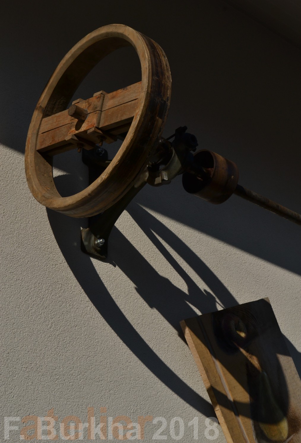 Des objets posés, hors contexte, sur cette façade pour provoquer des réactions – raviver la mémoire du lieu. L’ancien pressoir- lieu de vie villageoise.