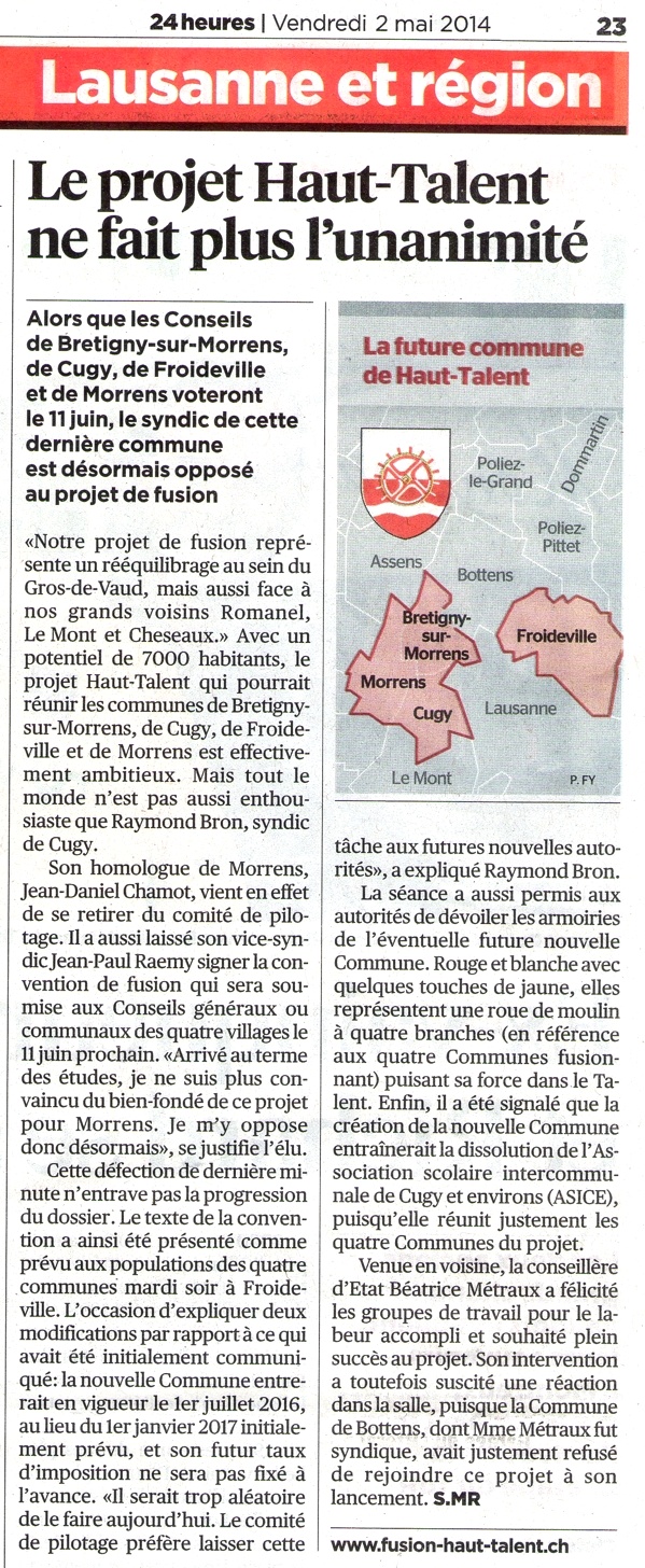 article de Sylvain Muller 24 heures du 2 mai 2014