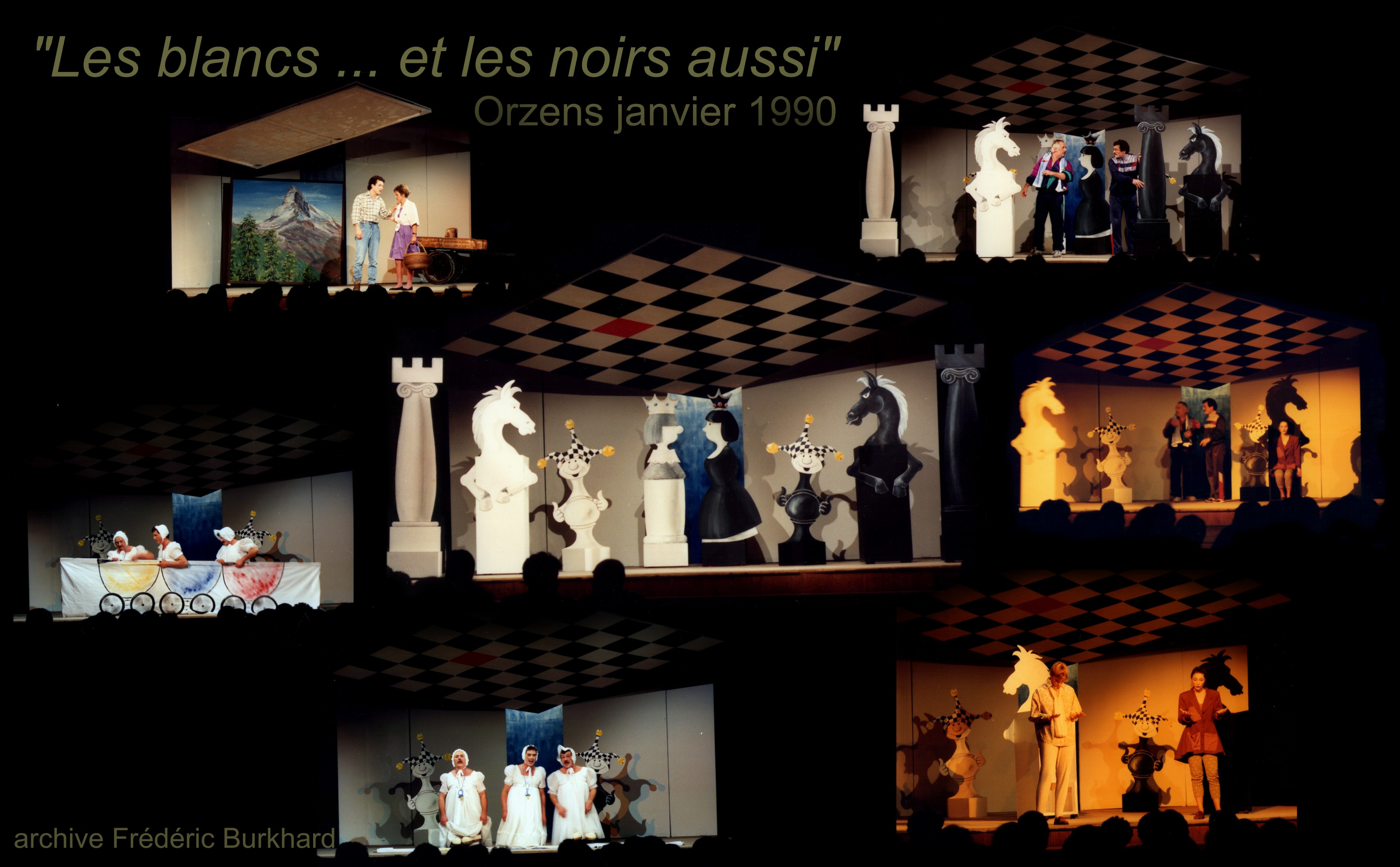 1991 Conception et réalisation de la scénographie du spectacle « Les BLANCS… et les NOIRS aussi », Mise en scène Philippe Leadermann (actu. dir. du théâtre du Pré aux Moines, Cossonay) et Bernard Vincent