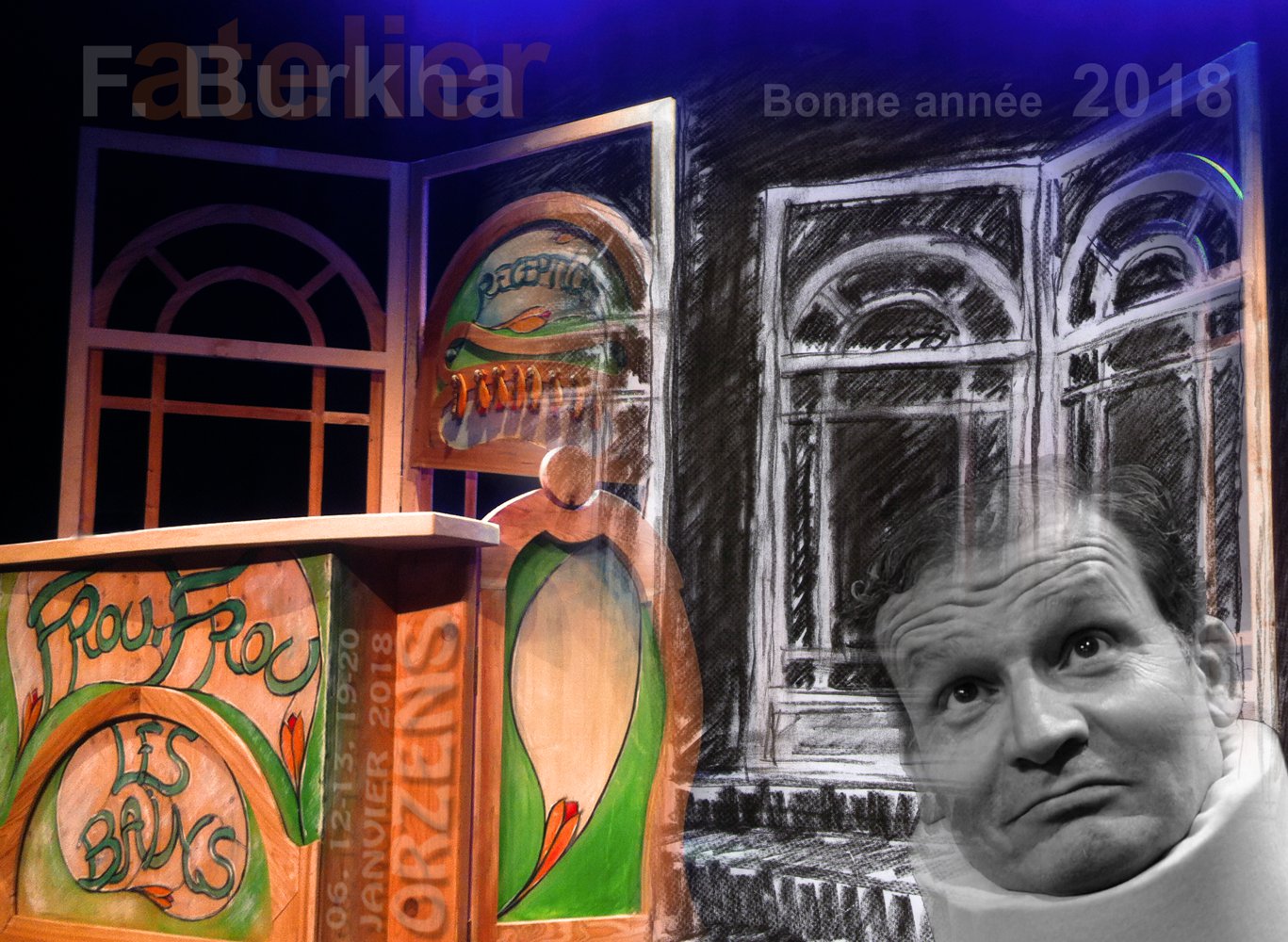 2017-18. Conception et réalisation de la scénographie du spectacle de la troupe d’Orzens. « FROU-FROU LES BAINS », comédie de Patrick Haudecoeur. Plus d’info sur https://theatreorzens.info/spectacle-2018/